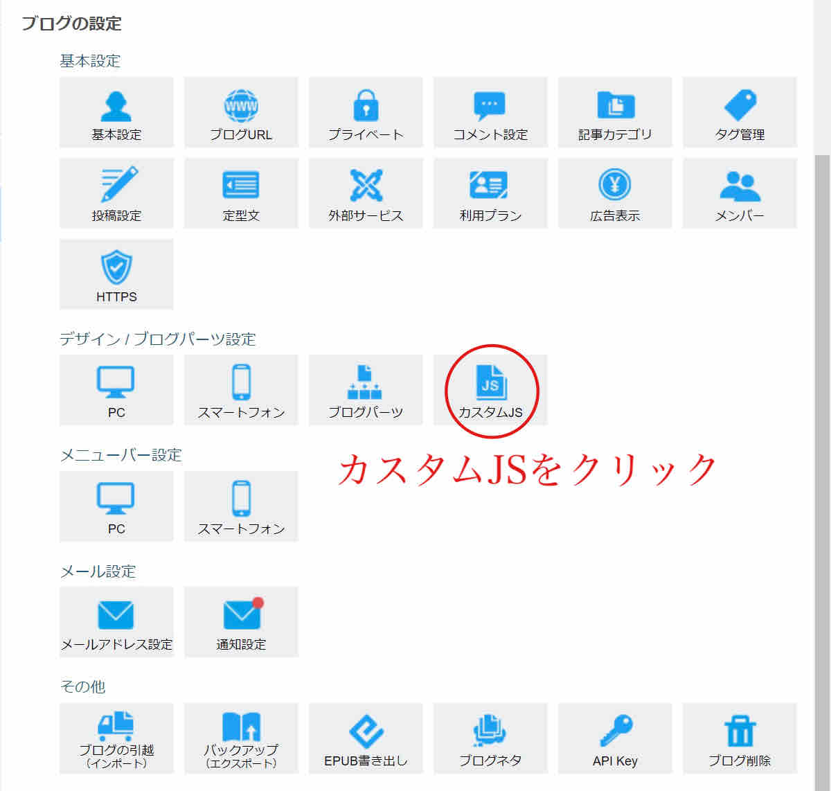ライブドアブログのブログ設定をクリックしてください。